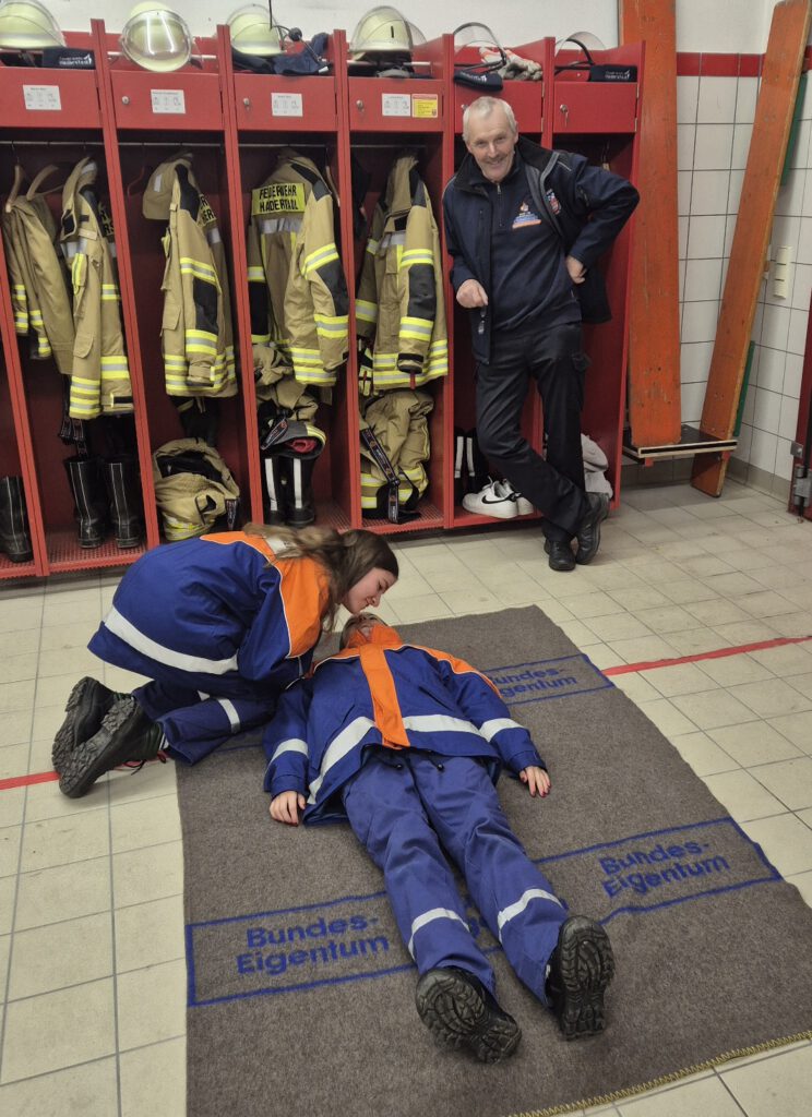Beim eigentlichen Wissenstest mussten zunächst Fragen online über das Handy beantwortet werden, bevor es anschließend in den praktischen Teil ging. Dort galt es unter anderem, die stabile Seitenlage korrekt durchzuführen und weitere Erste-Hilfe-Maßnahmen zu zeigen.